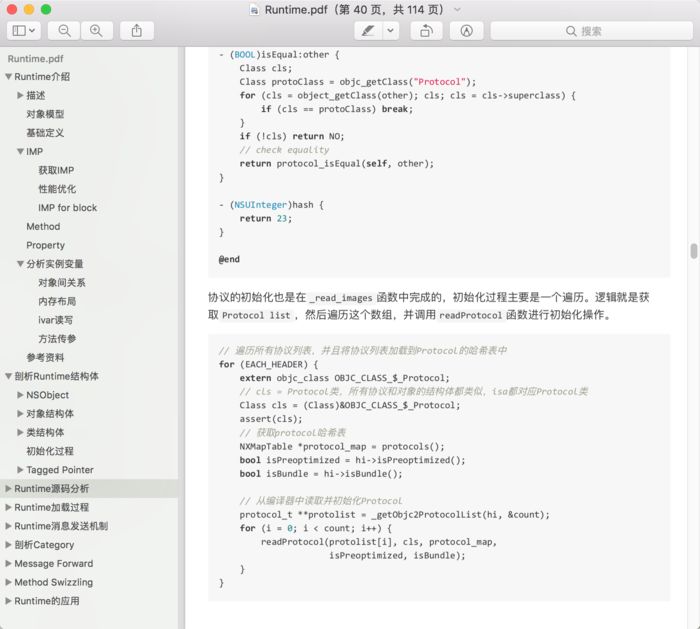简书由于排版的问题,阅读体验并不好,布局、图片显示、代码等很多问题。所以建议到我Github上,下载Runtime PDF合集。把所有Runtime文章总计九篇,都写在这个PDF中,而且左侧有目录,方便阅读。