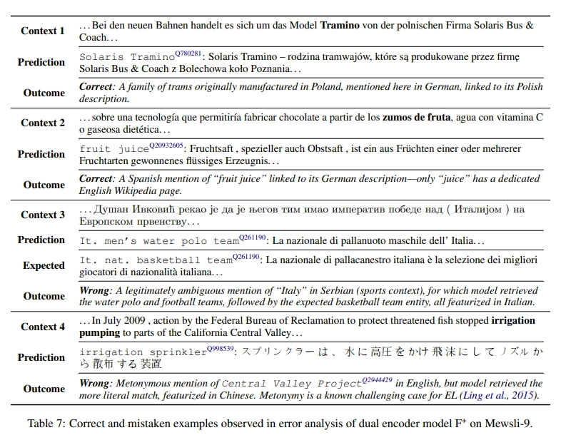 在 Mewsli-9的82,162个不同的目标实体中,只有11% 没有维基百科的英文页面,这为专注于英文维基百科实体的系统设置了一个上限。