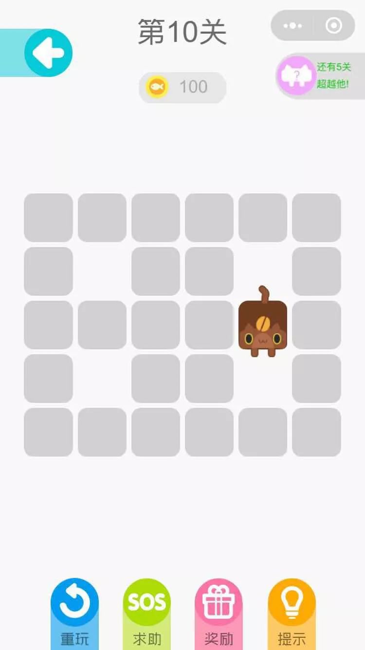大概玩法是:从地图中猫的位置开始出发,并且经过所有的格子就算过关。游戏还算挺有意思的,经过我的不断努力终于过到了 30 来关的样子。