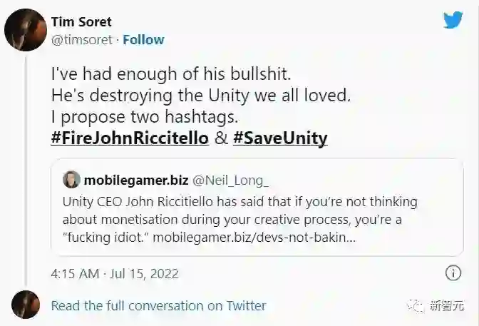 Unity CEO尚未置评