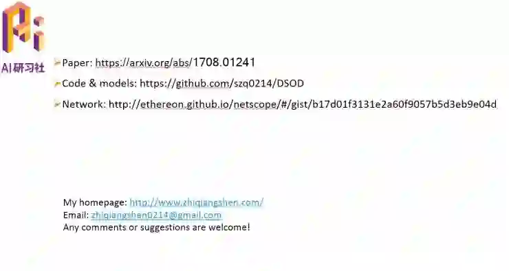 在近期雷锋网 AI研习社的线上分享会上,该论文的第一作者——复旦大学Ph.D沈志强为我们带来了对DSOD的详细解读,与此同时也介绍了他在CVPR 2017和ICCV 2017上的一些其它研究工作。