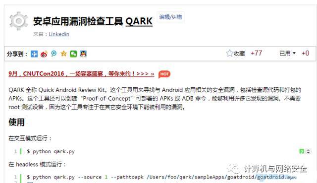 3、Qark:通过源代码或者是已经打开的APK文件来挖掘相关应用的漏洞。