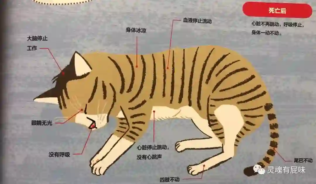 小猫会死掉,我们也一样。任何生命最终都有一死。那么,什么是死亡?书中给出了最直观的答案:死亡就是,没有呼吸,没有心跳,再也不会动了。
