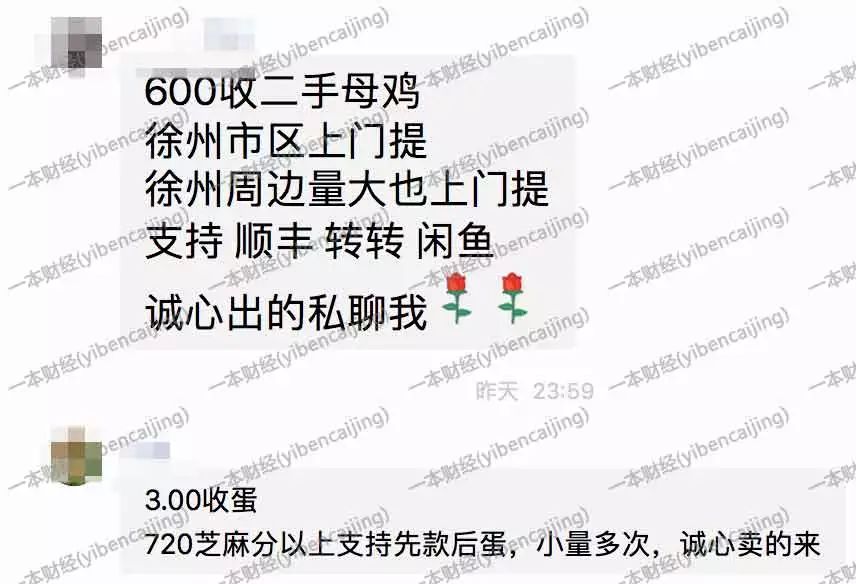 每日,群里都充斥着收蛋、收母鸡的消息。