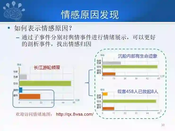 文本情感的原因发现方法,比如哈工大深圳研究院的徐睿峰老师做过一些工作,也有语料库,一般是按照类似问答系统研究的方式,这里面有情感词、有原文,通过记忆网络判别这个文章中哪句话是原因,通过类别判断是或不是。