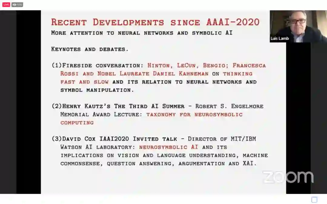 随后,巴西南大河州联邦大学计算机科学教授 Luís Lamb 谈论了「神经符号 AI」。Lamb 表示,基于 Marcus 在《The Algebraic Mind》一书中提到概念的神经符号工作涵盖了基于神经网络操纵符号的需求,「我们需要将二者逻辑形式化的基础性方法」,如 Judea Pearl 的思想。