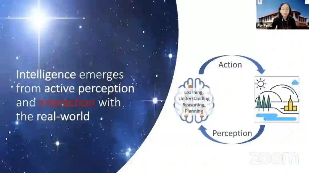 斯坦福大学计算机科学教授李飞飞率先发言,谈论了 AI「北极星」。她表示,「北极星」是与环境的交互。
