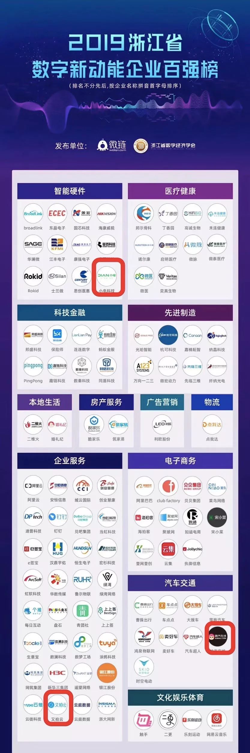 4.《2019浙江省数字新动能企业百强榜》发布,小电科技、又拍云、神汽在线入围