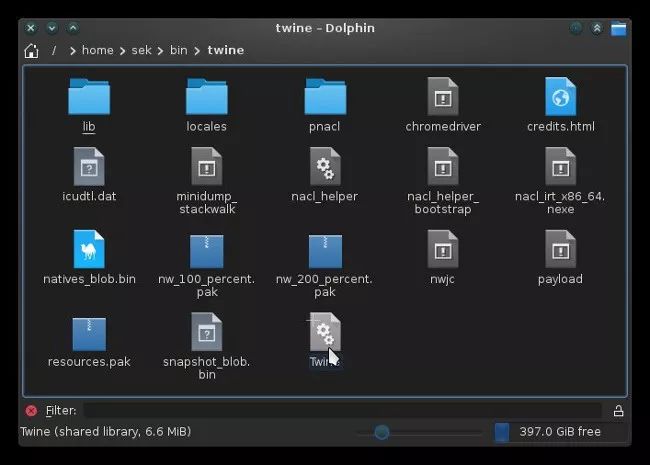 要创建一个 .desktop 启动文件,打开一个文本编辑器并创建一个名为 twine.desktop 的文件。桌面条目规范[10] 由 FreeDesktop.org[11] 定义。下面是一个简单的启动器,用于一个名为 Twine 的游戏开发 IDE,安装在系统范围的 /opt 目录中: