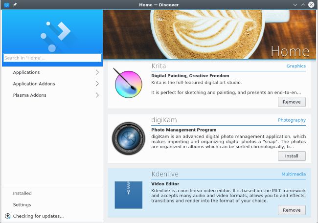 与底层命令一样,图形安装程序的名称取决于你正在运行的 Linux 发行版。相关的应用程序通常使用“软件(software)”或“包(package)”等关键字进行标记,因此请在你的启动项或菜单中搜索这些词汇,然后你将找到所需的内容。 由于开源全由用户来选择,所以如果你不喜欢你的发行版提供的图形用户界面(GUI),那么你可以选择安装替代品。 你知道该如何做到这一点。