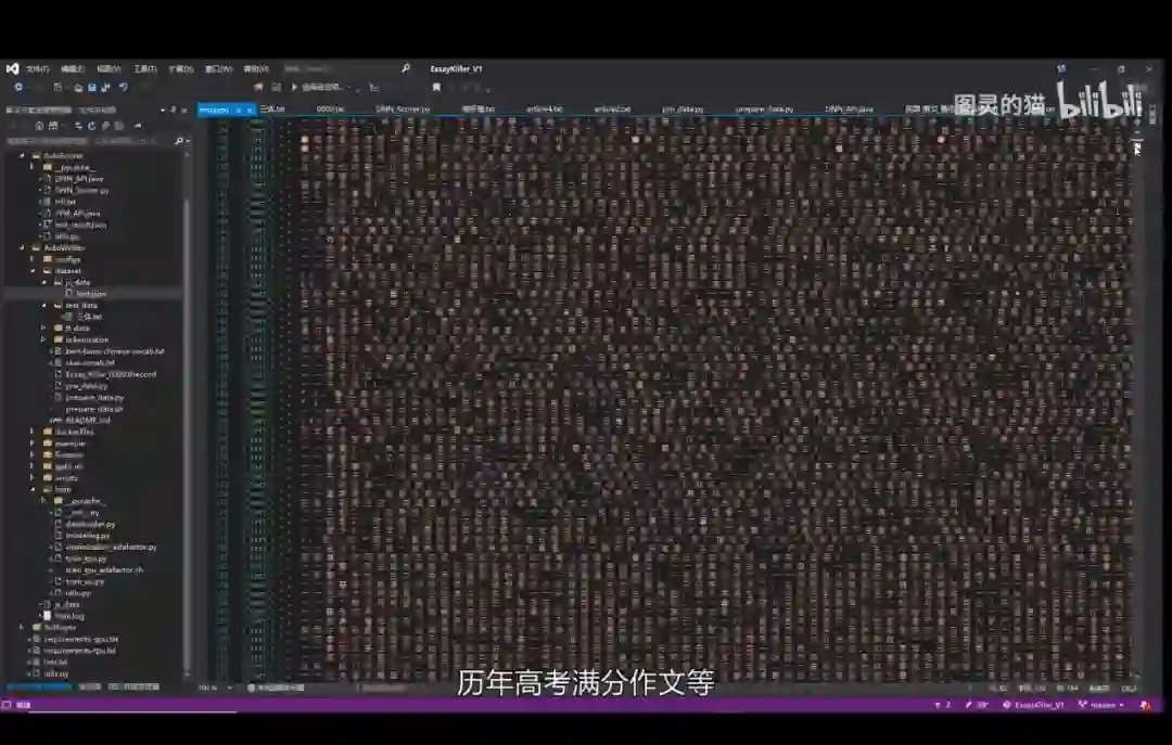 B 站 UP 主 - 图灵的猫,秉承了心动不如行动的理念,一个人利用三个月,500 个小时,10000 行代码,200000000 条数据,1700000000 个参数,开发了一个会写作文的人工智能 - EssayKiller。