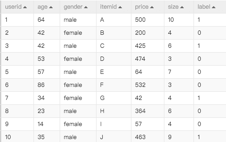 “onehot编码-3”的输入是itemid、price、size,附加列是itemid。