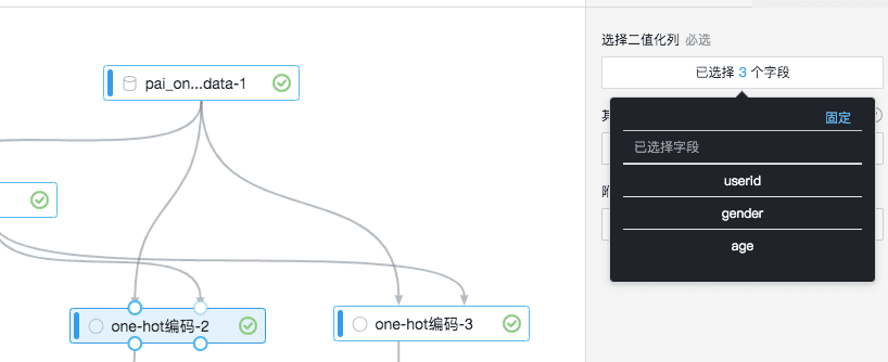 “onehot编码-2”的输入是userid、gender、age,附加列选择userid。