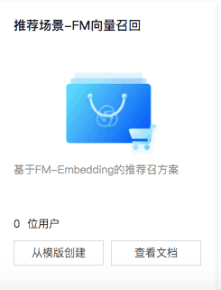 进入PAI-Studio,首页模板最下方位置点击从模板创建“推荐场景-FM向量召回”开箱即用: