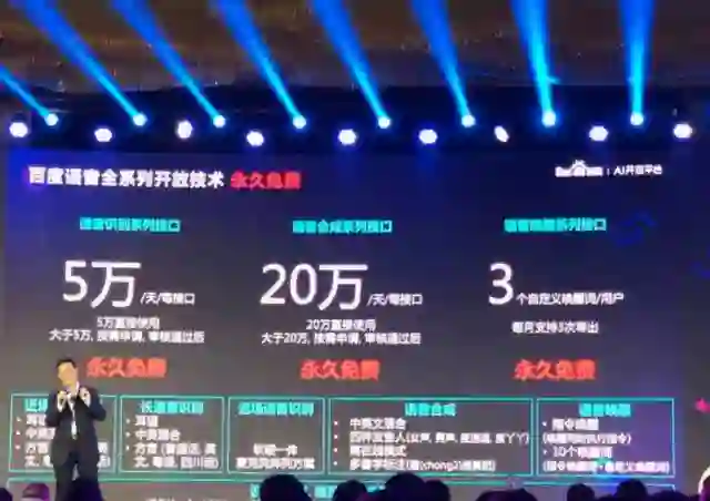 在抢开发者这件事上,百度最近一年的动作很多,这家AI巨头最大的筹码是技术。具体而言,百度开放的重点是语音、图像、人脸、UNIT、AR、PaddlePaddle。今年早些时候,百度曾先后推出“机器人视觉解决方案”、“人脸硬件合作伙伴计划”、“人脸识别接口新计费模式”,并宣布“语音技术全系列接口永久免费开放”。