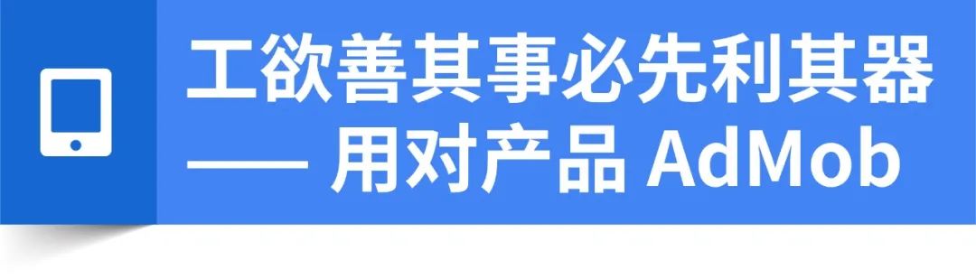 为了让广告收益最大化,AdMob 能够提供全部四种广告格式可以让广告主根据自己的展示位的需求进行自主选择,包括: 横幅广告、插页广告、原生广告、激励视频广告。