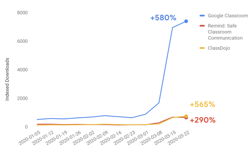 与 2019 年第四季度相比,3 月平均每周游戏下载量上涨 30%。3 月 22 日下载量单日突破 12 亿次
