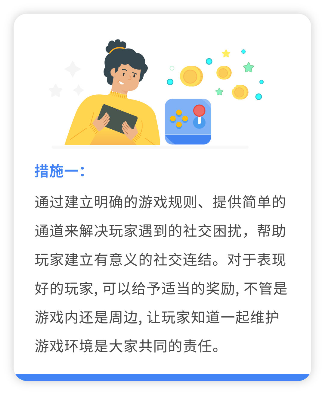 上面提到的 3 种情况虽然不是绝对的,但是在玩家中也占了很大比重。针对这些问题,Play 团队也给出了 3 种应对措施,来提升游戏体验,培养长期忠诚玩家。