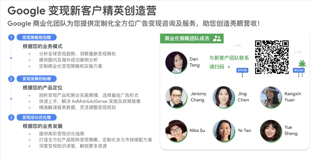 几位嘉宾的分享切实帮助大家避开了移动出海的坑。如果新的变现开发者对 Google AdMob 产品还有相关疑问,请联系新客户团队客户经理。