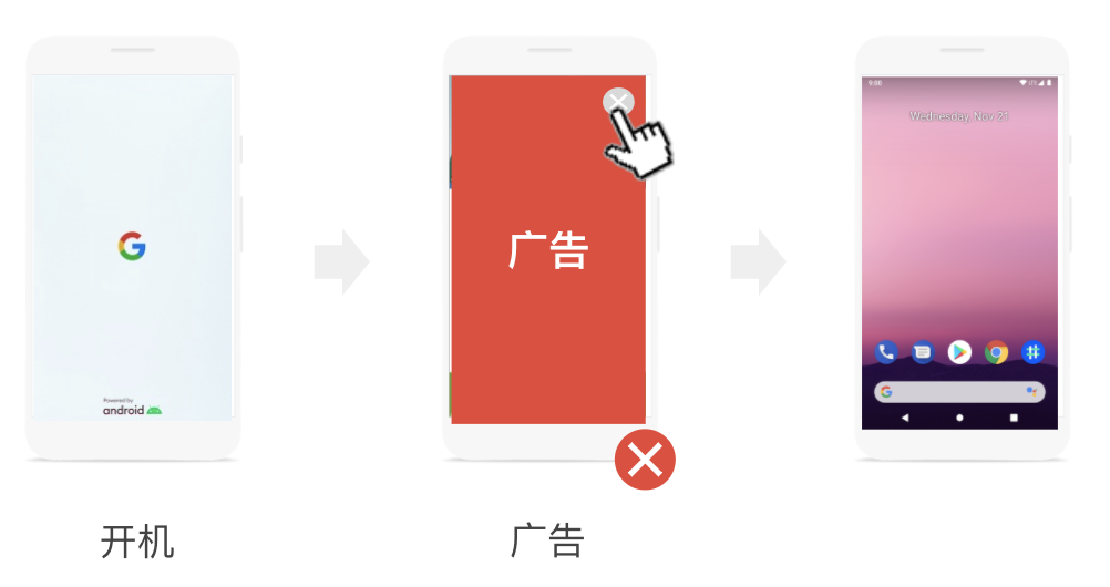 应用加载或退出时,不应展示插页广告,不要突然显示