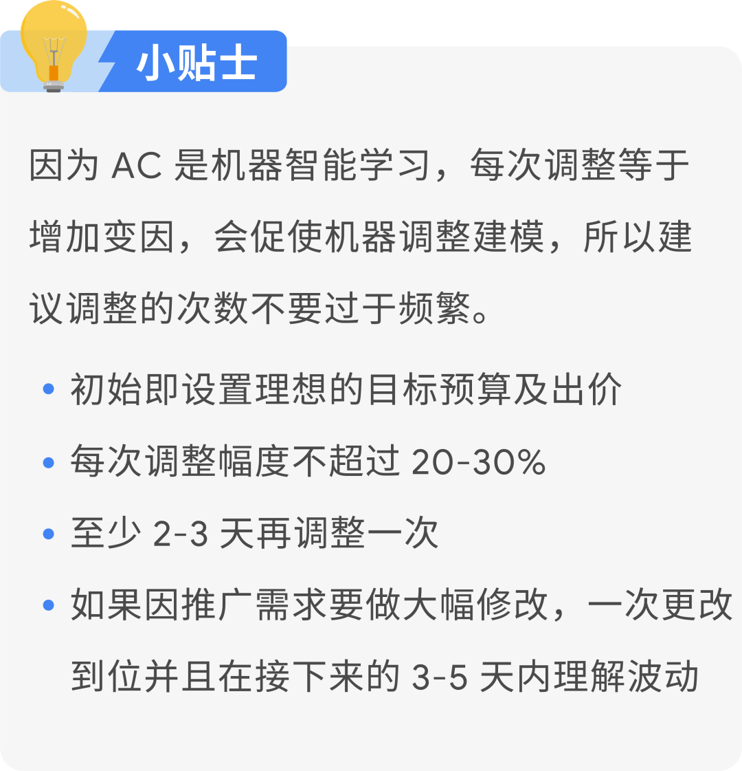 利用 Google 的智能推荐增加预算,每次调整的幅度维持在最佳做法的 20%-30% 之内