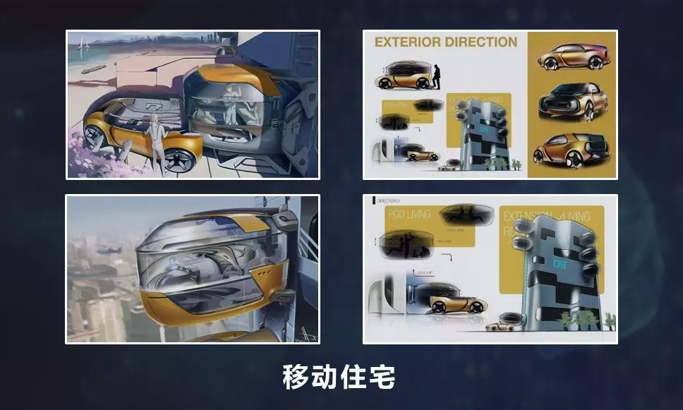 上世纪九十年代中期我还有一个移动住宅的设想。一个移动的住宅,配在一辆车上,各地像青年旅社一样,有专门连锁配套的社区。而我这个车到了配套社区后,用电梯把车载移动住宅接上去,社区里面有洗澡的地方,有做饭的地方,到了就能享用,我要离开的话,把移动住宅装回车上,一开就走了。这是鼓励人与人的交流、沟通,世界互相开放。这也是一种车跟房子的定义,都在演变。这是我们人类的未来,我们必须要去思考未来,我们要做准备,我们不能等到外国有了再着手做。