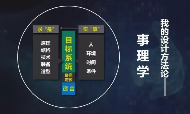 而改革开放以后,中国的设计很多只是讲原理、结构、工艺、造型,就是不讲事情。而真正的精华是在研究,把事情弄清了就能创造出西方没有的办法,解决中国的问题不一定要跟着西方的老路走,这就是事理学的核心,研究外因,然后去选择组织内因,甚至于给内因出题目。一个是目标要抽象出来,再一个把目标描述清楚,研究外部因素,外部弄透了再去组织内因。设计不在设计之里,真正的大设计是在设计之外,研究生活,研究条件,研究限制,这个思维方法是我们祖先造就的。