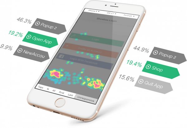 触摸热图的图片示例由Appsee提供