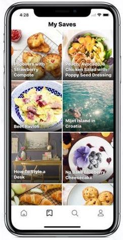 这个美食视频应用,为我们提供了底部导航栏的一个很好的示例。这些图标都很容易识别:房屋式的主页按钮、形状像放大镜的搜索按钮、以及经典的书签按钮和个人资料按钮。