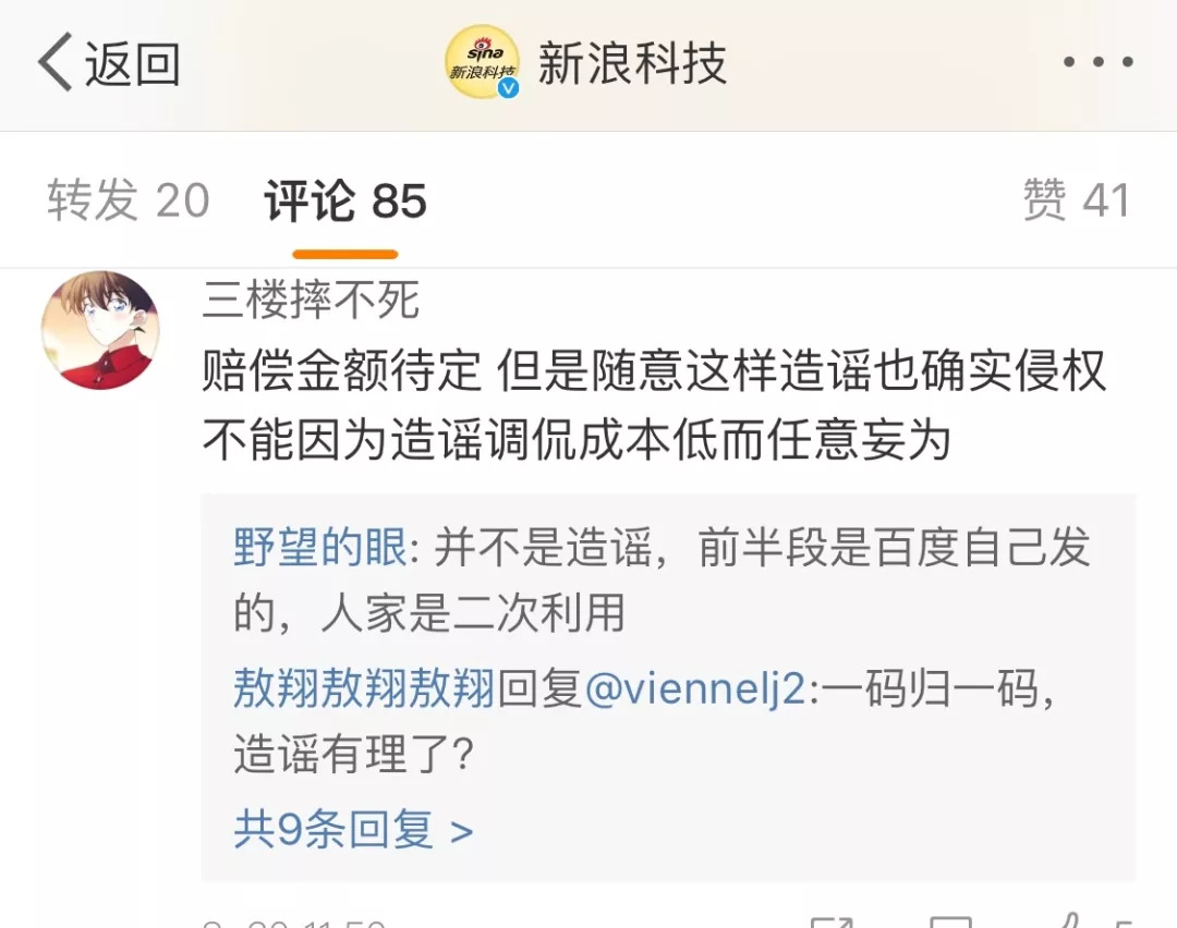 对此,百度方面认为,段子的前半段是引述了百度的辟谣声明,没有曲解,没有断章取义,但后半句,则是一个谣言,是造谣行为。