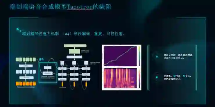 不过,这种端到端的注意力机制也带来了稳定性差的问题。俞栋博士团队通过分析发现,注意力机制是模型出现漏词、重复等问题的主要原因。下图右边有两个合成案例,其中标蓝的字是被漏掉的。
