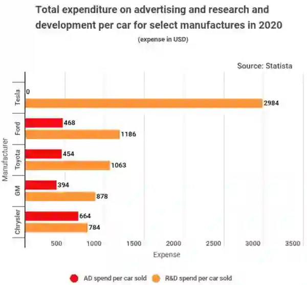 【特斯拉每辆车研发费用近1.9万元,是行业平均水平3倍】StockApps.com新发布的一份报告比较了各大汽车厂商平均每辆汽车的研发费用。其数据显示,每辆特斯拉汽车的研发费用为2984美元(约合人民币18990元),是汽车产业平均水平的3倍,比福特、通用汽车和克莱斯勒研发费用(平均每辆车)加在一起都高。(科创板日报)