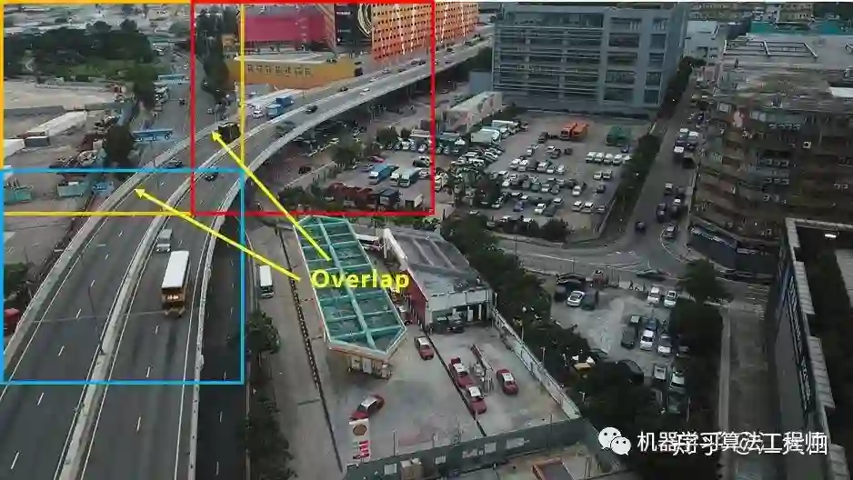 为了避免两张小图之间,一些目标正好被分割截断,所以两个小图之间设置overlap重叠区域,比如分割的小图是960*960像素大小,则overlap可以设置为960*20%=192像素。