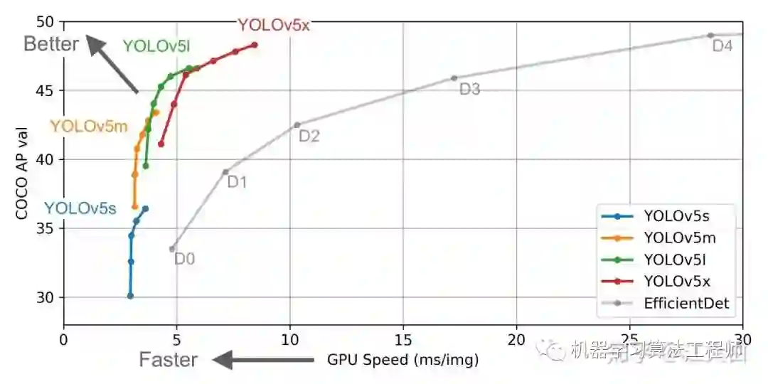 Yolov5s网络最小,速度最少,AP精度也最低。但如果检测的以大目标为主,追求速度,倒也是个不错的选择。