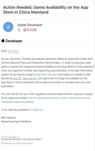 此前苹果给游戏开发者发送了一封邮件,通知他们在一个月的“缓冲期”内尽快上传 App Store 内游戏的版号信息。可以预计的是,在接下来的一个月内,将会有更多的游戏被下架。