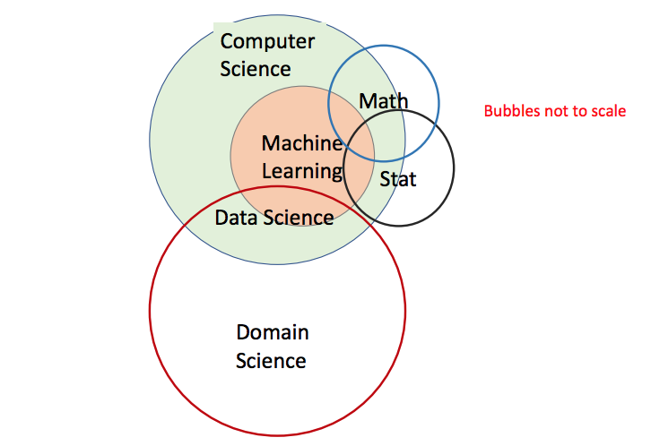 图2: 计算机科学、机器学习和统计学之间的关系(个人观点)