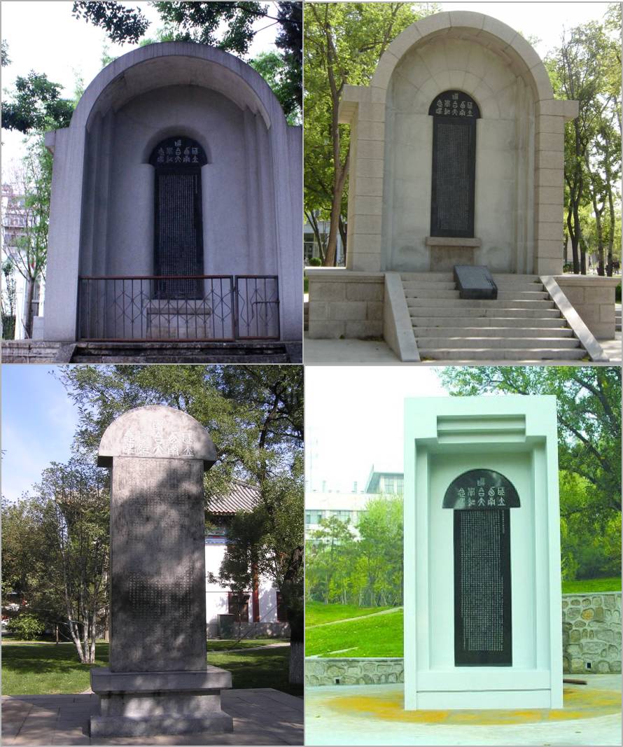 ► 上左、上右、下左、下右,分别为位于昆明云南师范大学、南开大学、北京大学、清华大学校园内的西南联大纪念碑。原碑用栏杆围着保护起来了。