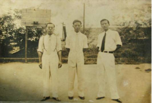 ►左起,严忠铎、周恒涛、杨祚德在抗战胜利前去美留学时在重庆合影。