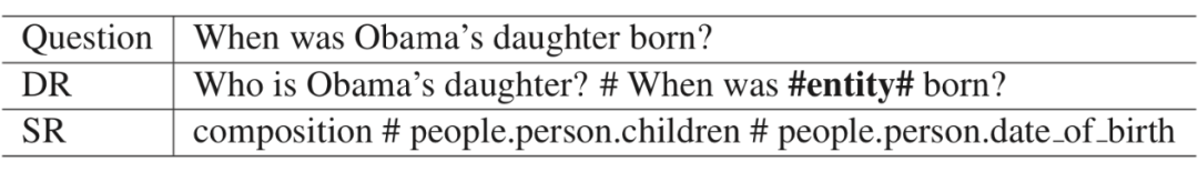 SR 包含原始复杂问题的关键信息,包括问题类型和问题中的谓词