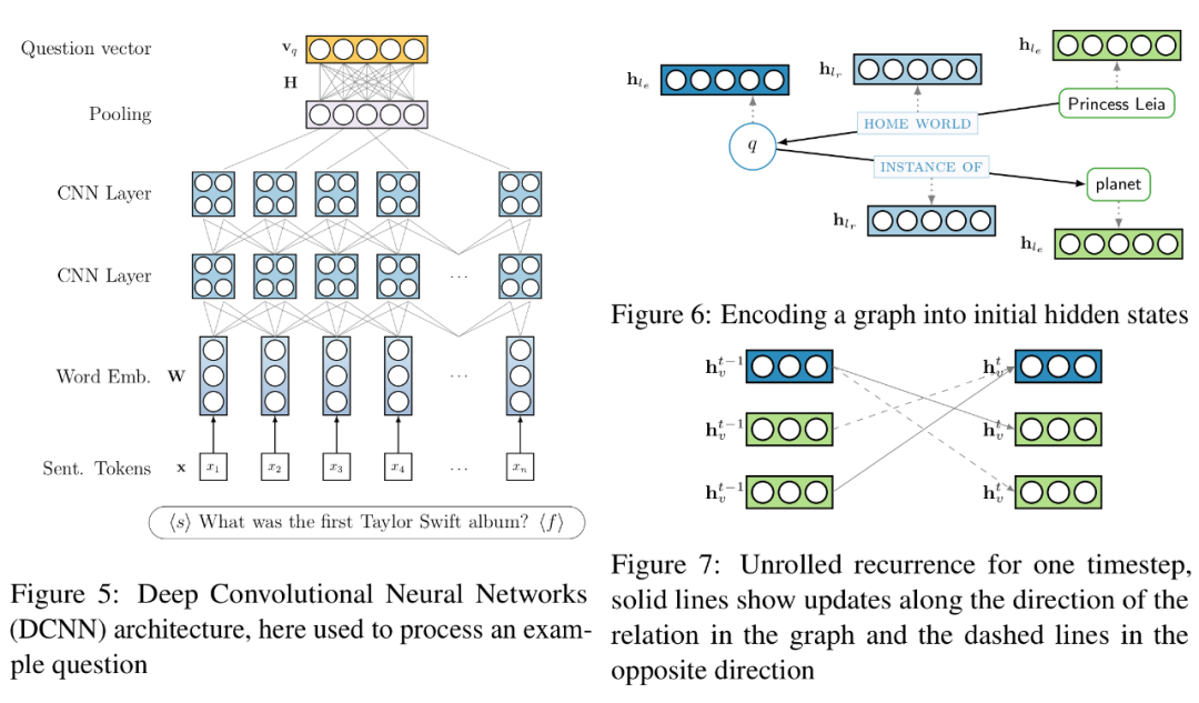 对于查询图,门控图神经网络(Gated Graph Neural Networks, GGNN)通过基于相邻节点和关系迭代更新图节点的表示来处理查询图。作者采用 GGNN 进行语义解析,以学习语义图的矢量表示。作者表示该文应该是首个将 GGNN 应用于语义解析和 KBQA 的工作。