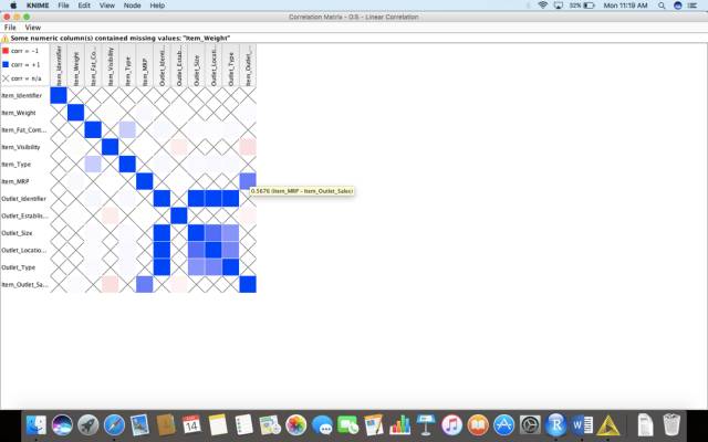 为了创建一个correlation matrix矩阵,我们在节点存储库中键入“linear correlation”,然后将其拖放到我们的工作流中。
