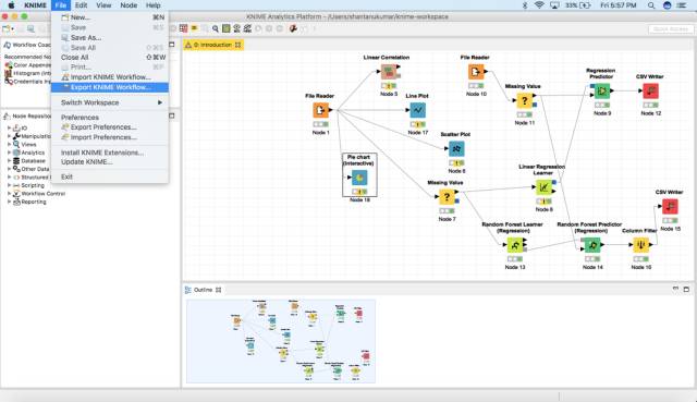 为了导出一个KNIME工作流,可以简单地单击File > Export KNIME Workflow。