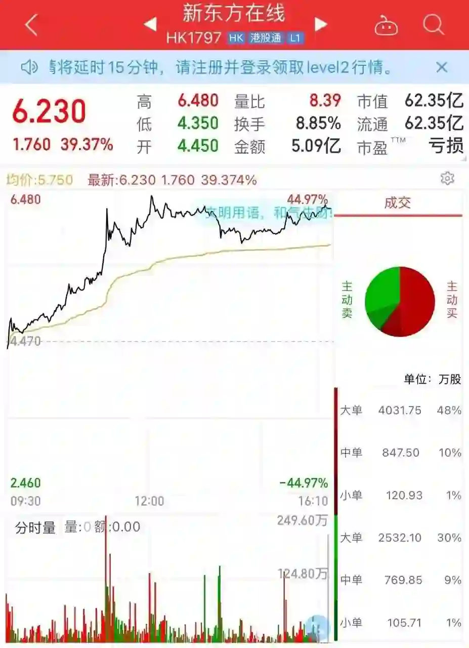 股市迅速反应,「东方甄选」的主体运营公司「新东方在线」的股价当日随之一路走高,6月10日收盘时上涨近40%。