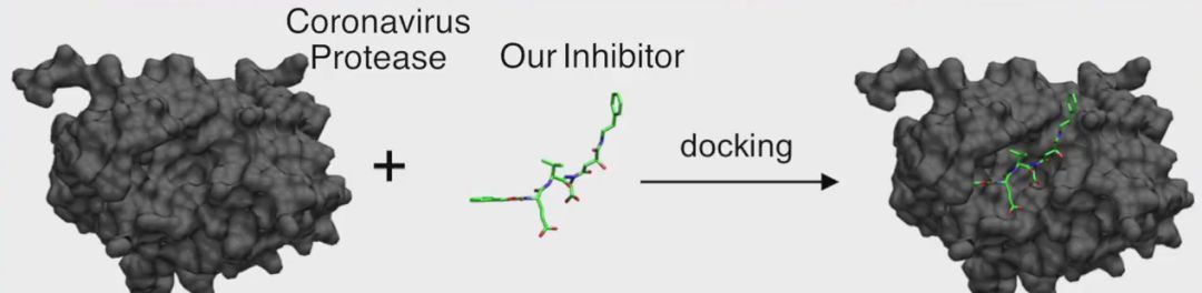 病毒上的蛋白酶可以催化化学反应,将病毒上的其他蛋白分成若干小块,从而帮助病毒繁殖。而我们的目的找到一种药物分子抑制剂来阻止这一繁殖过程。要找到这种抑制剂,我们可以选择从现有的药物数据库(如免费商业化合物虚拟筛选数据库 ZINC)寻找或自己创造一种新的分子化合物。