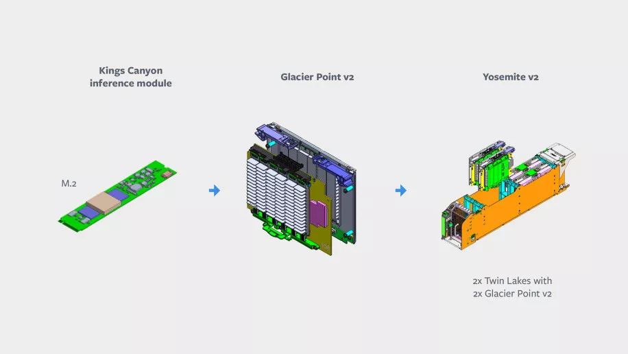 至于专为推理任务而设计的Kings Canyon共分四个部分:Kings Canyon推理M.2模块;Twin Lakes单插槽服务器;Glacier Point v2载卡;以及Facebook的Yosemite v2机箱。Facebook表示正在与Esperanto、Habana,英特尔,Marvell和高通公司合作,开发能够同时支持INT8和高精度FP16工作负载的ASIC芯片。