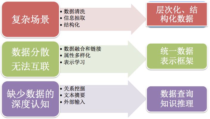 分散数据的统一表示框架:对于管理分散数据,我们首先是需要定义一个全局的schema表示和存储方法,然后基于schema进行概念数据的融合,属性的挖掘和发现,在数据关联上有可能要通过各种表示学习的方法来完成。
