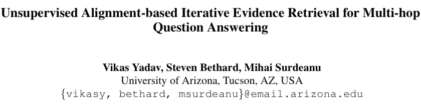 [1] Vikas Yadav, Steven Bethard, and Mihai Surdeanu. 2019a. Alignment over heterogeneous embeddings for question answering. In Proceedings of the 2019 Conference of the North American Chapter of the Association for Computational Linguistics: Human Language Technologies, (Long Papers), Minneapolis, USA. Association for Computational Linguistics.