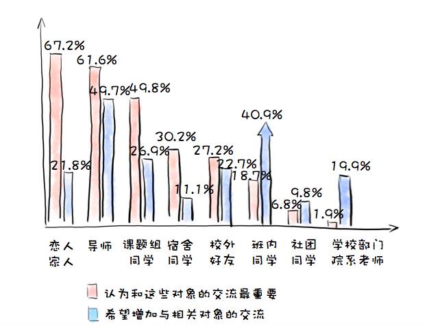 恋人及家人、导师的交流最为重要,最希望与导师、班内同学增加交流。