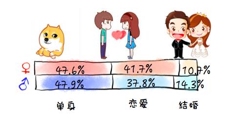 在男女比接近2:1的条件下,男女脱单比例竟然达到了惊人的一致,男生们是不是都去隔壁了??