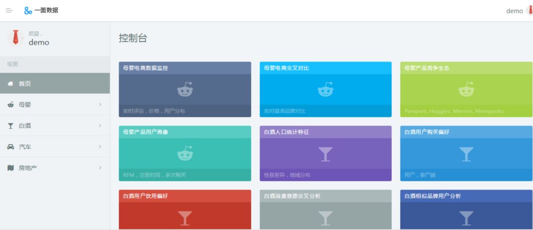 在知乎上写这些报告,除了收获知名度,还收获意外之喜,一些知名品牌的消费品公司、汽车公司及互联网公司,主动找我们做一些数据抓取及分析。整个团队没有一个 BD,也从来不请客户吃饭。于是我们顺势做了如下的网站以及一个成熟的 Dashboard 框架(开发数据监控的 Dashboard 超有效率),目前主要监控和分析母婴、白酒、汽车及房地产四大行业,都是一些愿意花钱进行深度了解用户以及行业趋势的公司。收入自动上门,很开心!